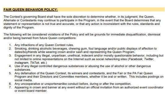 PA Fair Queen Behavior Policy