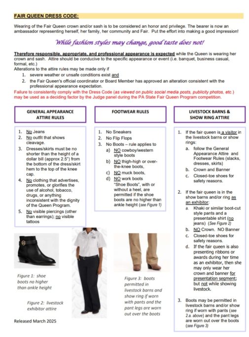 PA Fair Queen Program Dress Code