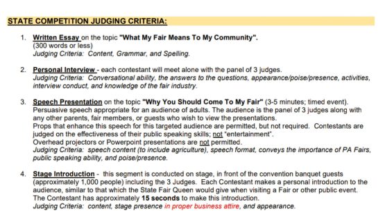 PA Fair Queen Judging Criteria